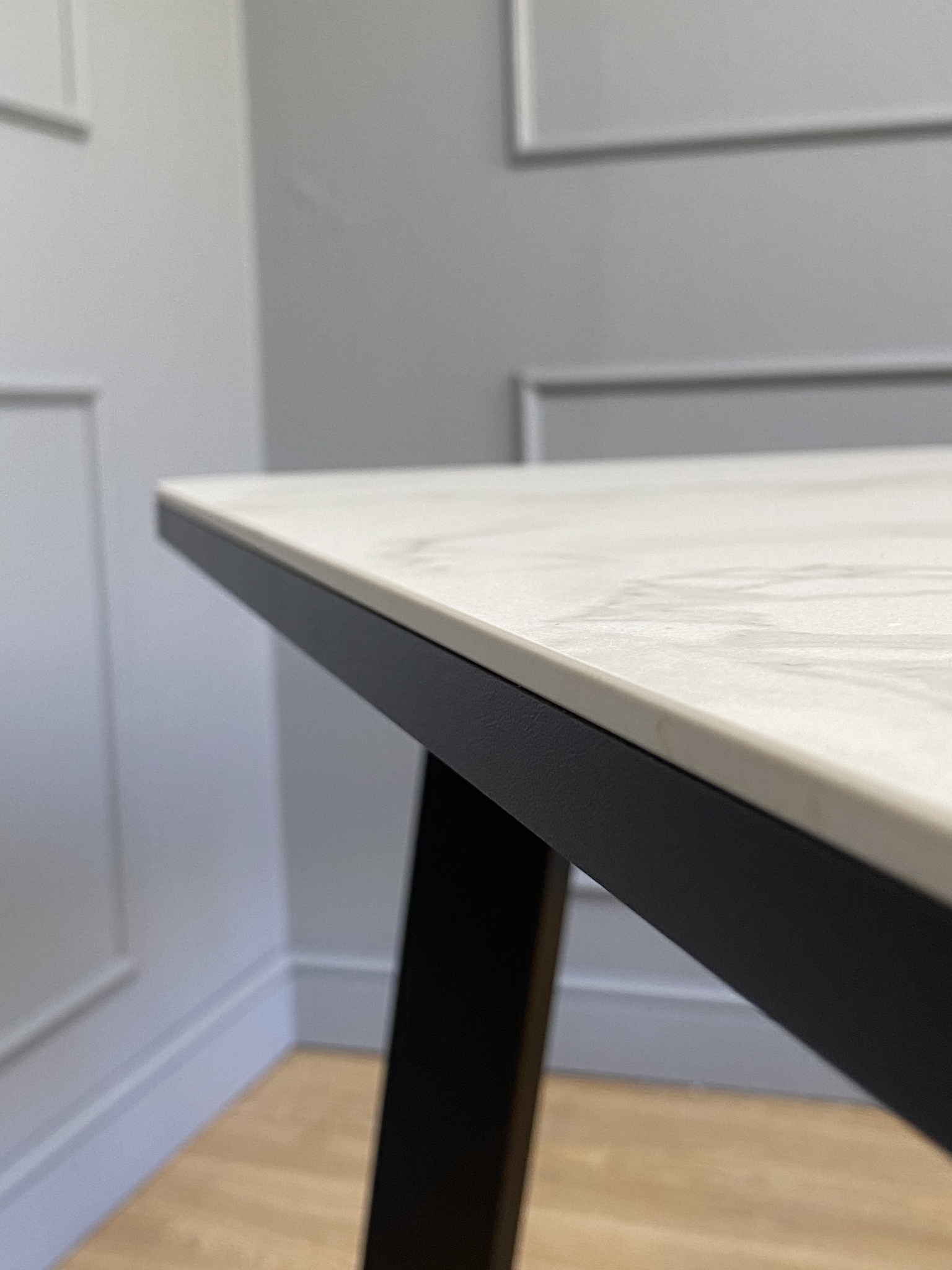 Оригинальный дизайнерский стол с глянцевой керамикой по лучшей цене на рынке. Как правило, за столом даже большой семьи собирается одновременно не более 2-3 человек. Днём мама кормит ребёнка, муж с женой ужинают вечером, дети обедают после школы. А значит, для активной городской семьи нет смысла занимать половину кухни большим столом. Размер стола позволяет использовать его как основной или в дополнение к островку для завтрака. RR900 компактный стол с цельной керамической столешницей, идеален для 3-х человек. Стол дизайнерского уровня, не подразумевает вставок и раскладного механизма. Глянцевая керамика - очень эффектный материал, который сохряняет все свойства обычной керамики. Устойчивость к высокой температуре до 1000°С, твердость выше, чем твердость металла (а это значит на ней не останутся следы от металлических приборов), не впитывает загрязнения и влагу.