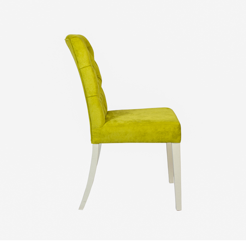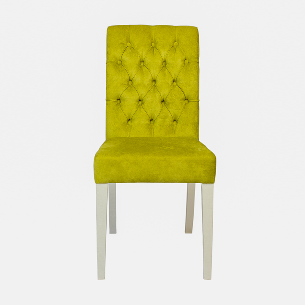 Каркас изготовлен из массива бука, сиденье и спинка мягкие и удобные, сидя на нем вам будет комфортно принимать пищу, читать, смотреть телевизор. Капитоны на спинке украшают изделие и выглядят очень эффектно. Передние ножки прямые и чуть зауженные книзу, задние слегка изогнуты, вместе они устойчиво стоят даже на неровных поверхностях и служат надежной опорой всей конструкции. Кресло имеет среднюю высоту и оптимальное по ширине сиденье - подойдет человеку любой комплекции. В каталоге богатая палитра обивочных тканей, подобрать необходимый цвет не составит труда.