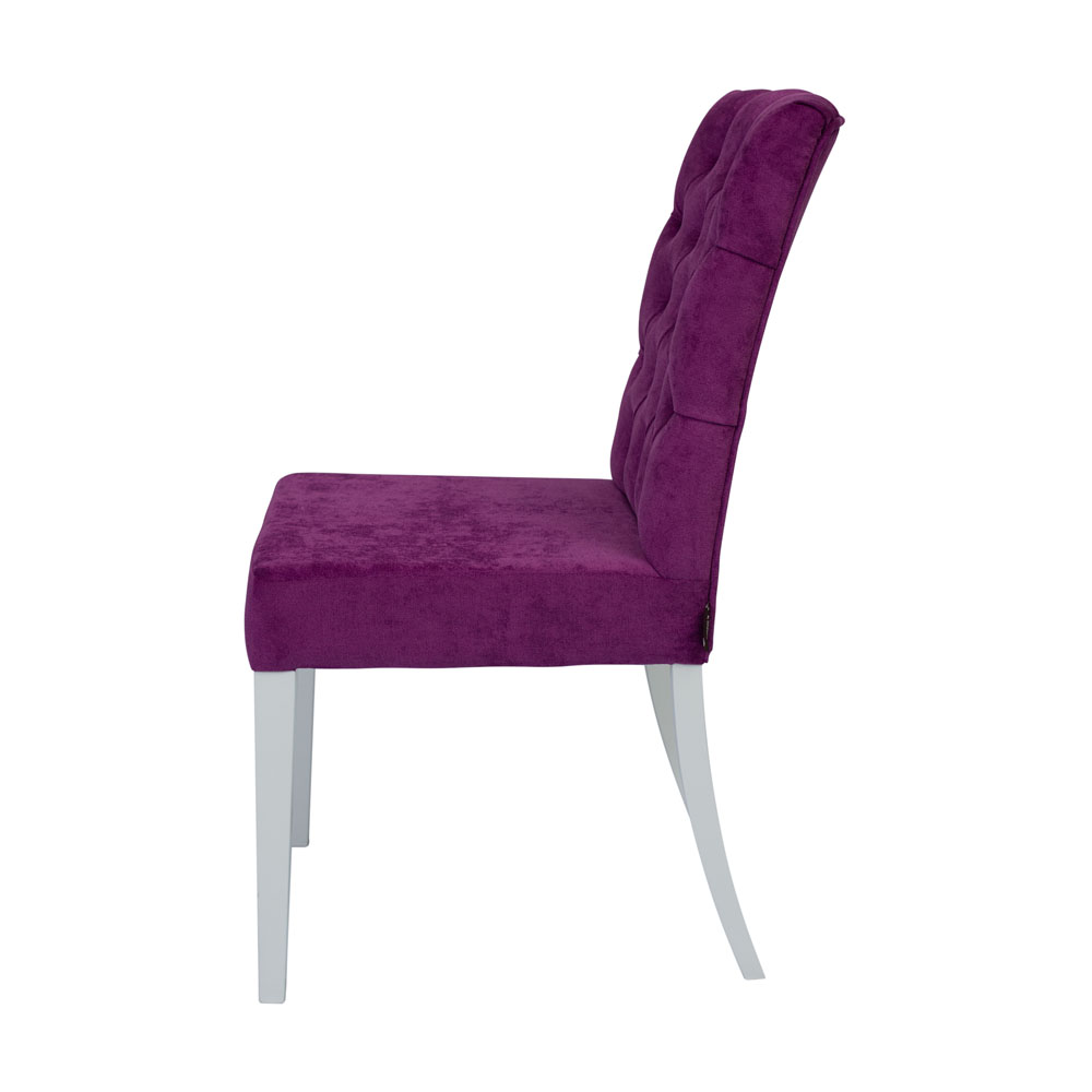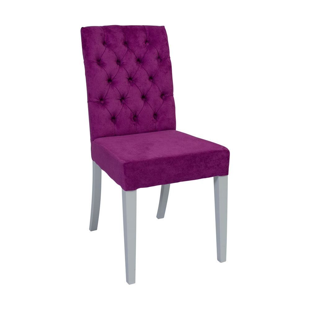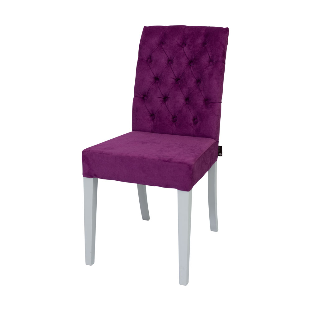 Каркас изготовлен из массива бука, сиденье и спинка мягкие и удобные, сидя на нем вам будет комфортно принимать пищу, читать, смотреть телевизор. Капитоны на спинке украшают изделие и выглядят очень эффектно. Передние ножки прямые и чуть зауженные книзу, задние слегка изогнуты, вместе они устойчиво стоят даже на неровных поверхностях и служат надежной опорой всей конструкции. Кресло имеет среднюю высоту и оптимальное по ширине сиденье - подойдет человеку любой комплекции. В каталоге богатая палитра обивочных тканей, подобрать необходимый цвет не составит труда.