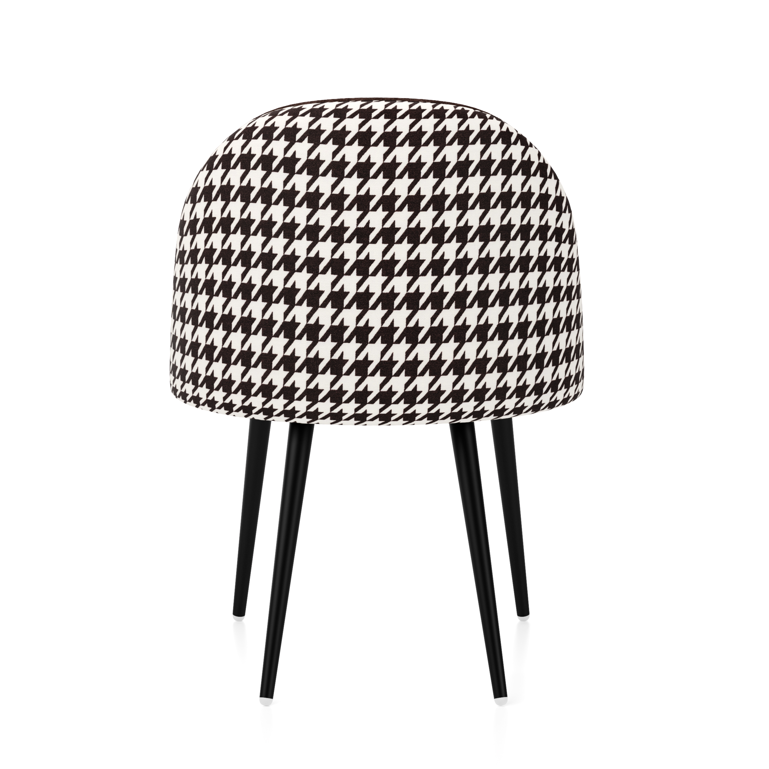 Яркий дизайн с солидным внешним видом – это стул-кресло «Мила». Кто-то назовёт его креслом, кто-то стулом, но никто не останется равнодушным! На этот стул не садятся – в него погружаются. Спинка охватывает поясницу по кругу, а на широком сидении никому не тесно. А узор, который украшает спинку достоин отдельной истории. Люди старшего возраста единодушно назовут его «куриной лапкой» и вспомнят, что этот оригинальный узор украшает собой десятки вещий на протяжении всей их жизни. Но придумали его не в СССР. Впервые такой узор встречается еще за двести лет до нашей эры на плаще, найденном в Скандинавии! Его происхождение относят к руническим письменам древних германцев. Но по-настоящему узор сделали популярным на рубеже 19 и 20 веков американские модные дома. И тогда же дали ему международное название: houndstooth (в переводе «собачий клык»). Наш кухонный стул «Мила» выполнен на прочном металлокаркасе российского производства с толщиной металла холодного проката 1.5 мм. Кресло «Мила» будет отлично смотреться и за