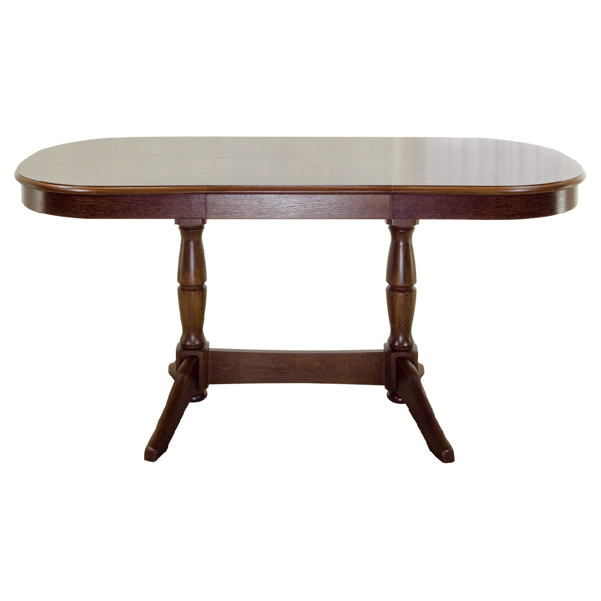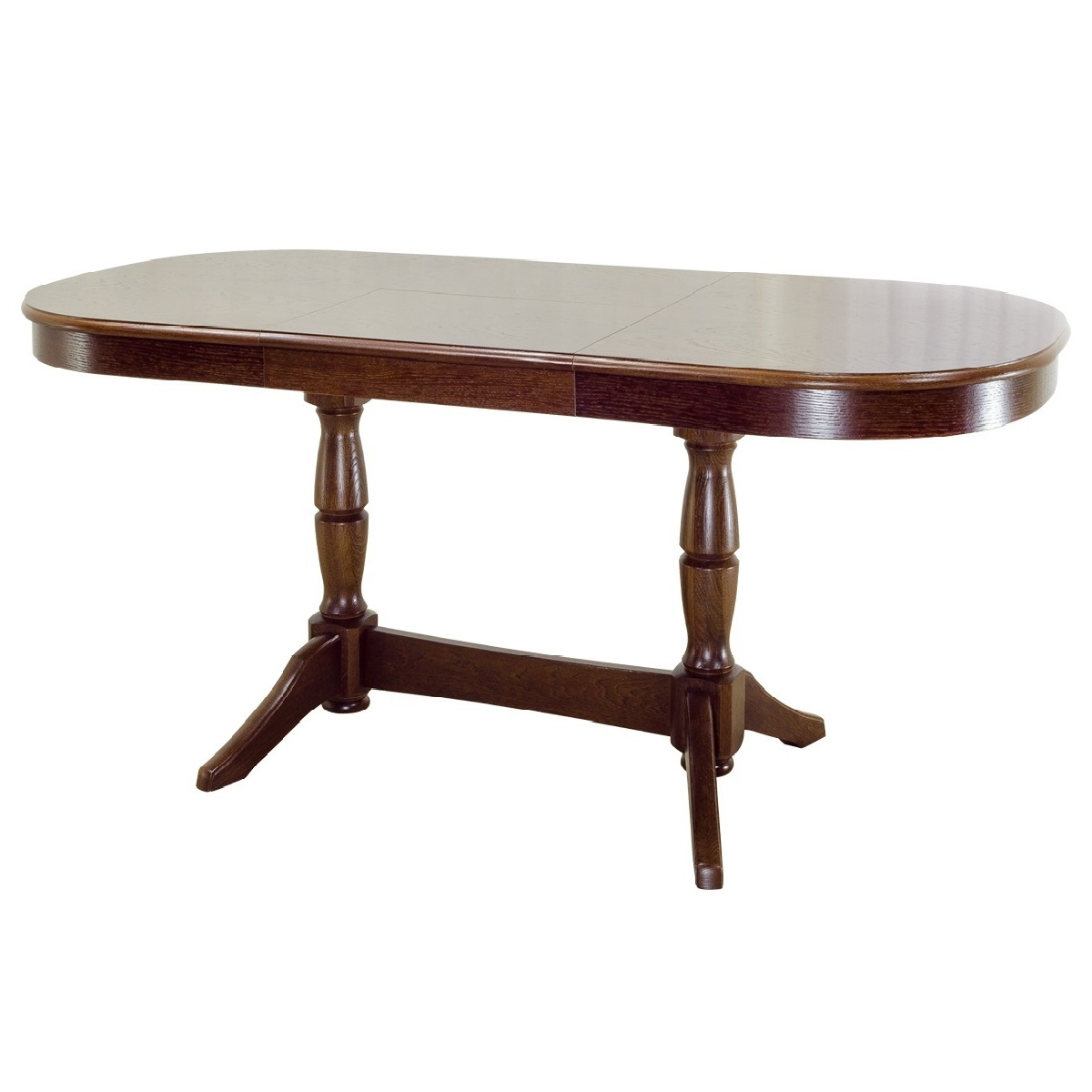 Эта модель оборудована столешницей овальной формы, плавные линии которой добавляют в интерьер элегантности и благородства. С помощью специальной вставки размер стола легким движением руки может увеличиваться на 50 см и так же просто возвращаться в исходное положение. Оригинальность изделия обеспечивают две фигурные округлые ножки, соединенные перекладиной и переходящие в широкие и устойчивые раздвоенные лапы. Классическое исполнение изделия, его сдержанный и респектабельный внешний вид позволят разместить стол в комнатах с любым интерьером.