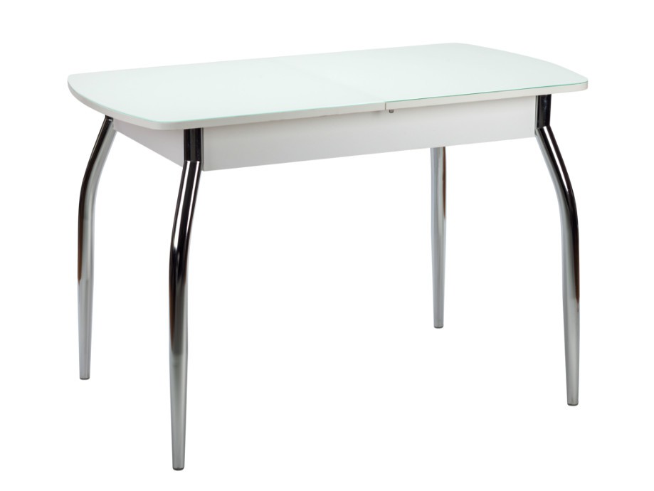 Стол Чикаго СТ МП 1100(1400)*680*750 Ноги 01 (к-кт) гальваника (стекло Белое матовое цвет БЛ)