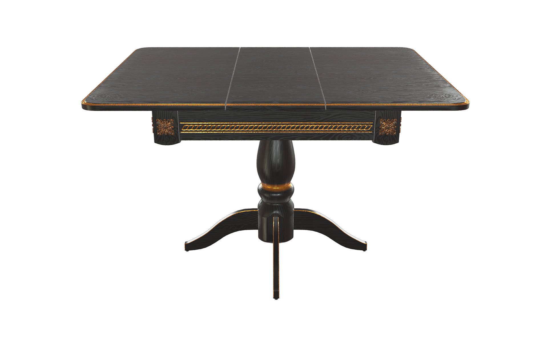 Стол Этра 900(1200)*900*765 (тон черный RAL9005 + патина золото) отлично подойдет для интерьеров в стиле Классика.