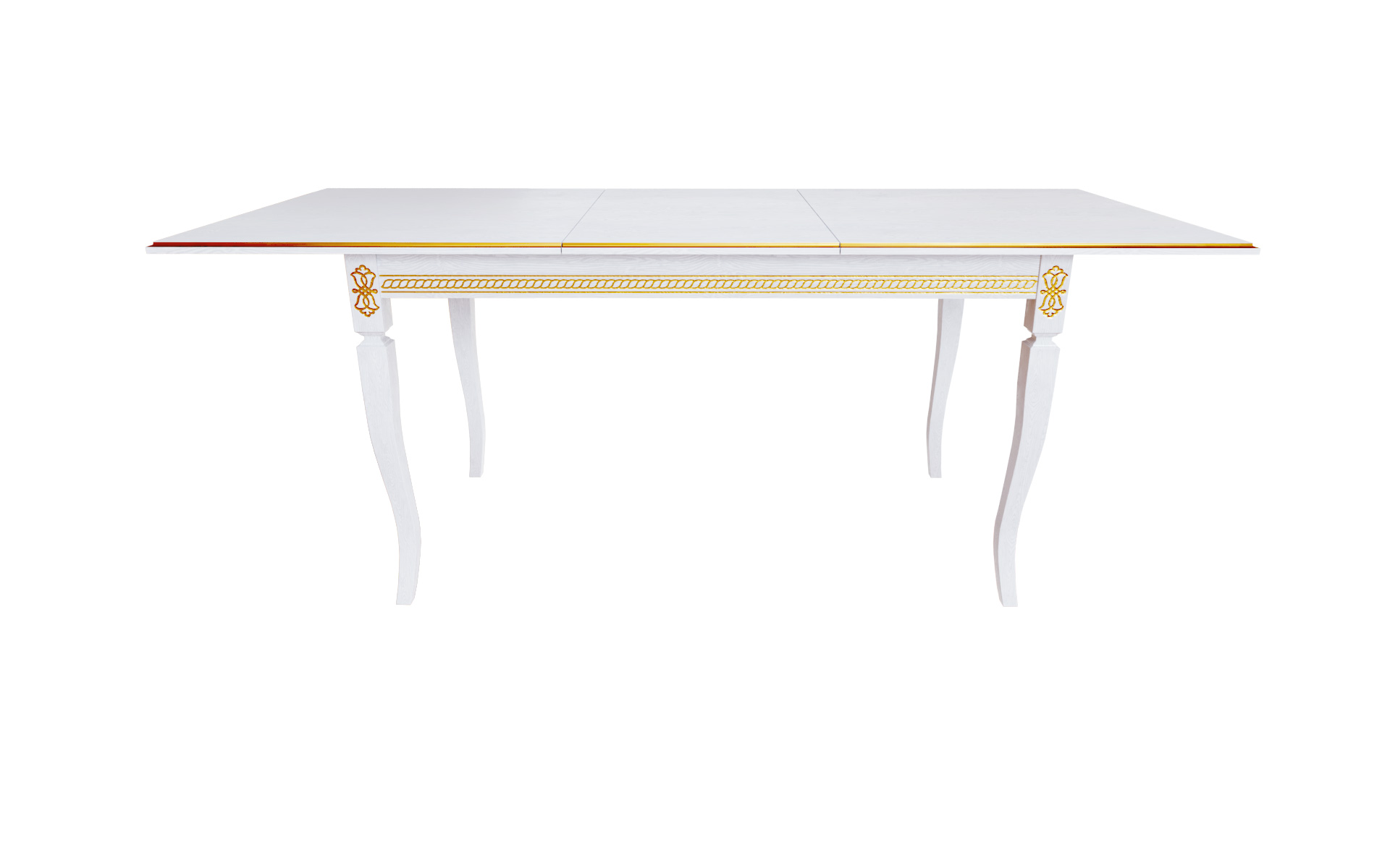 Стол Империал 1500(2000)*900*765 (тон белый RAL9003 + патина золото) отлично подойдет для интерьеров в стиле Классика.