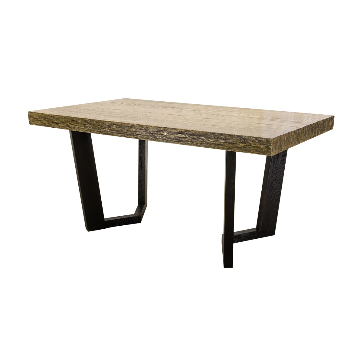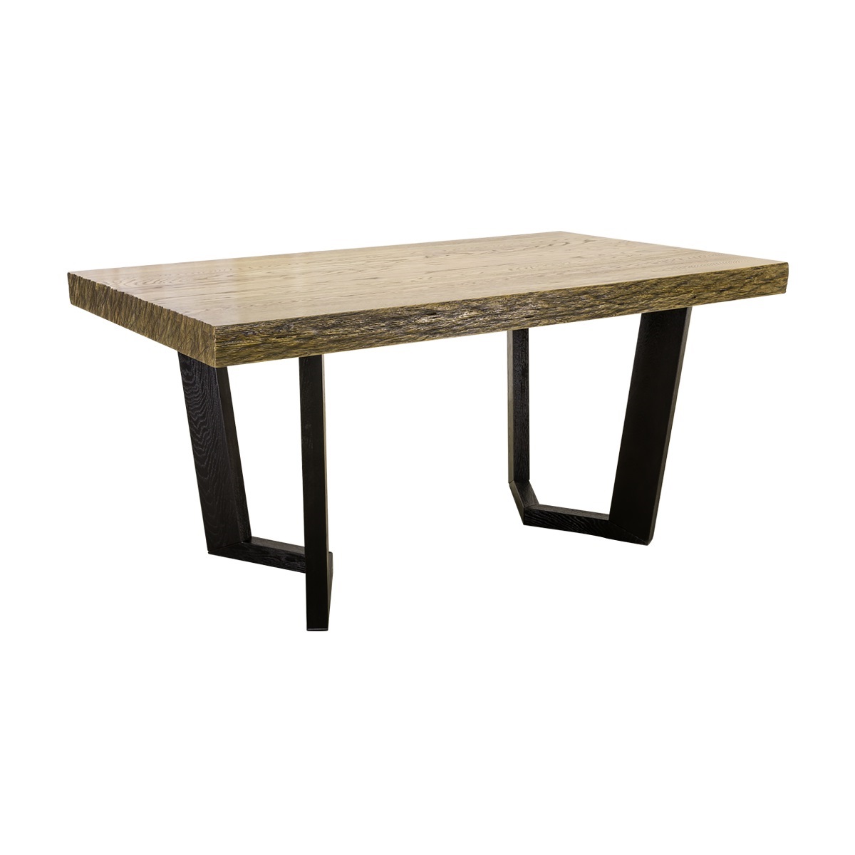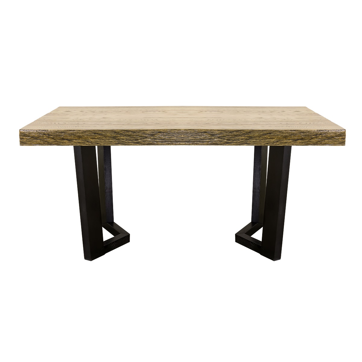 Этот стол красив своей простотой и лаконичностью. Столешница из массива дуба не раскладывается, имеет натуральный не идеально ровный край и фактуру настоящего дерева - в дополнительном покрытии лаком такой стол не нуждается, так же как и в декорировании скатертями и текстильными салфетками. Ножки соединены попарно в многогранные конструкции, изогнутые под разными углами. Высота и размер стола оптимальны для современных квартир и домов, где кухня объединена с гостиной. Он точно понравится вашей семье и будет украшать ваши обеды и ужины много долгих лет.