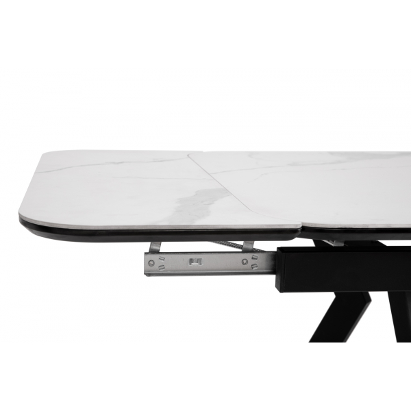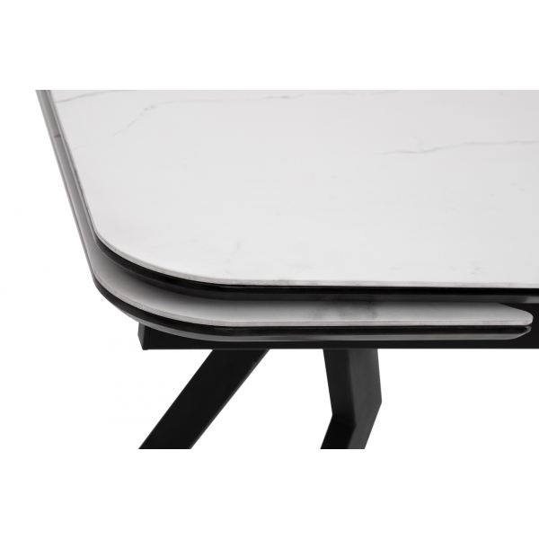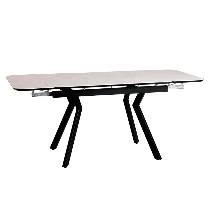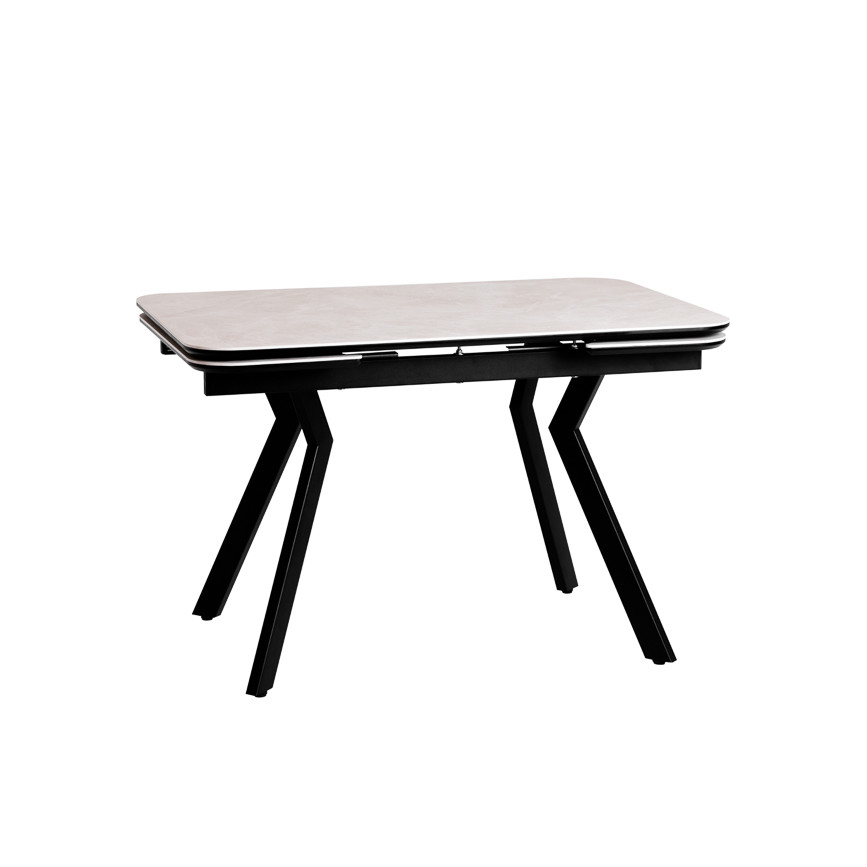 Стол кухонный кермика на металлическом каркасе Валео 1200(1500/1800)*800*760мм (т.820 (Черная шагрень), Керамика 20 (Жемчуг))) отлично подойдет для интерьеров в стиле Модерн.