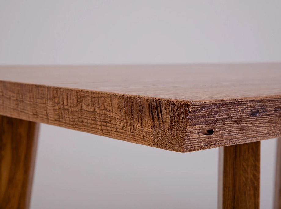 С торцов столешница отделана цельно-гнутым обкладом из массива дуба, сверху и снизу покрыта натуральным дубовым шпоном.<br>