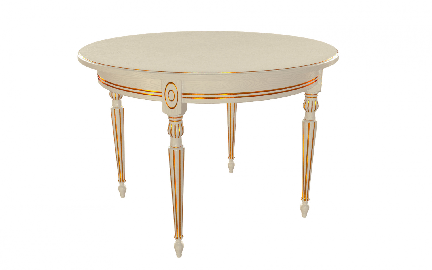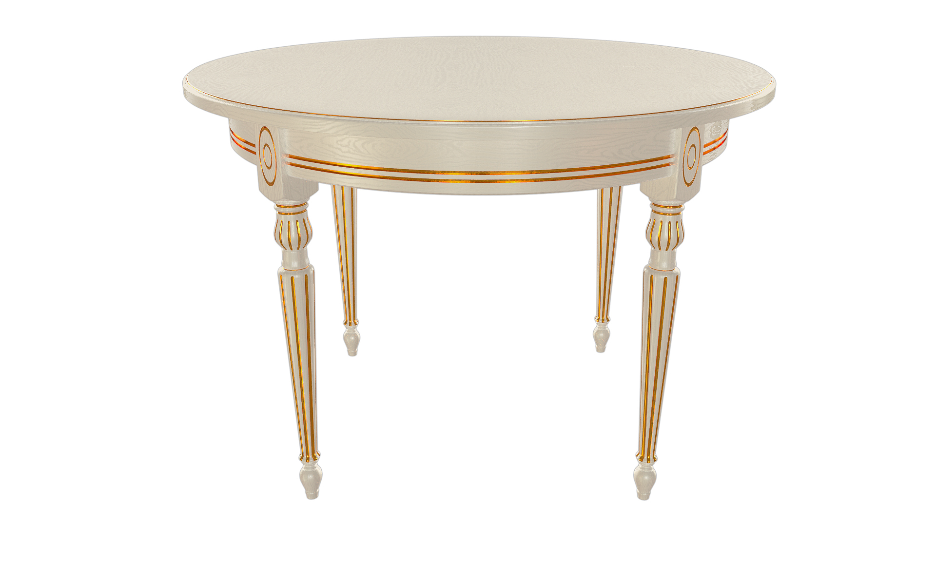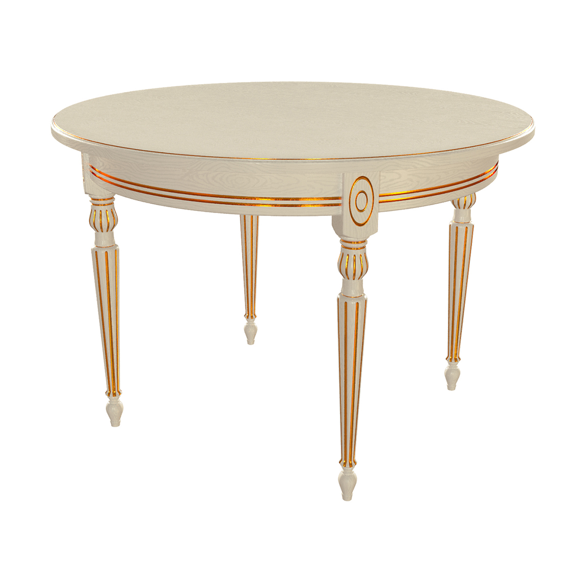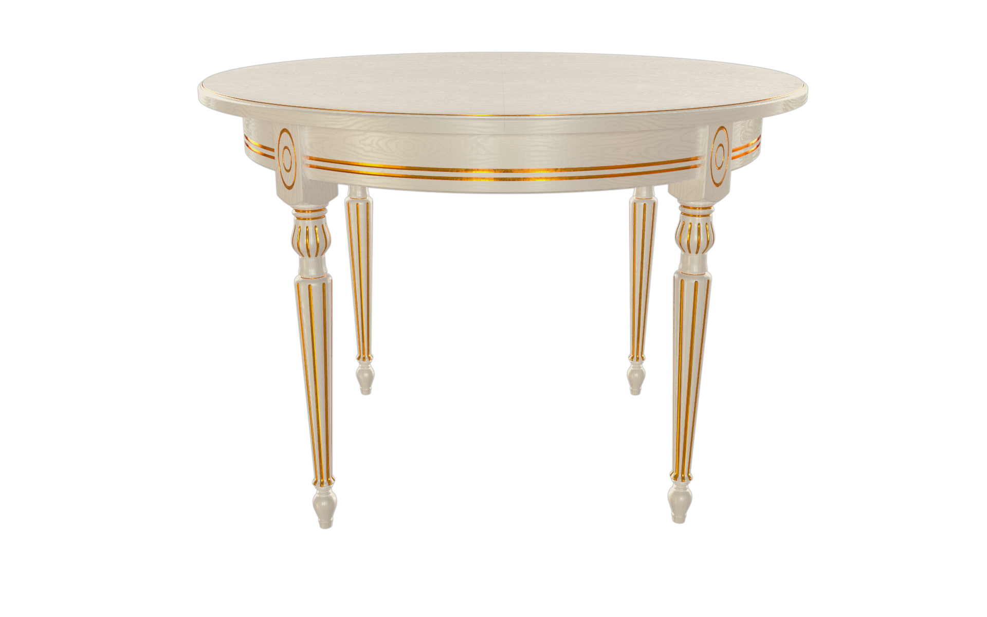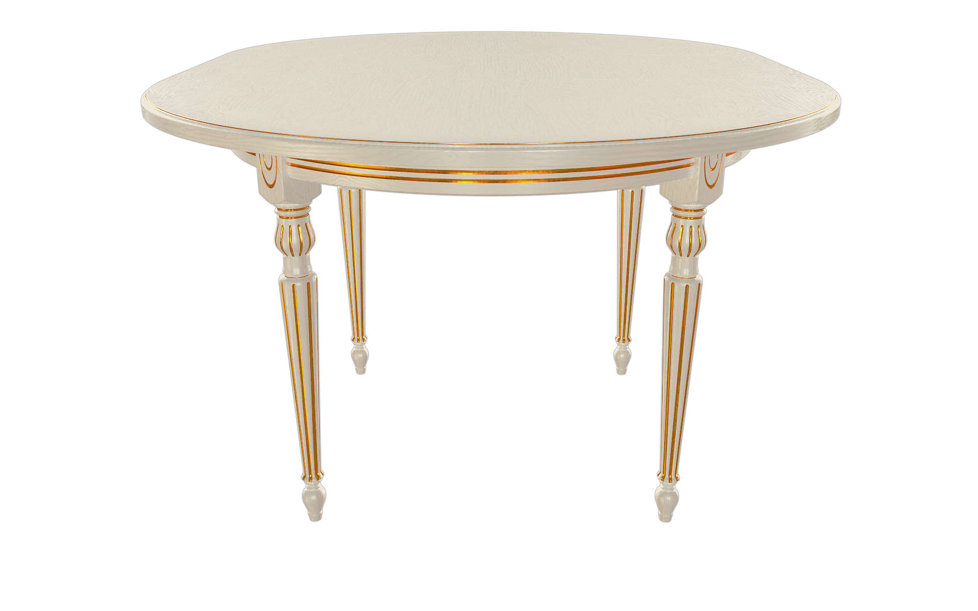 Стол Лакшери 1100(1490)*1100*765 (тон слон.кость RAL1013 + патина золото) отлично подойдет для интерьеров в стиле Классика.