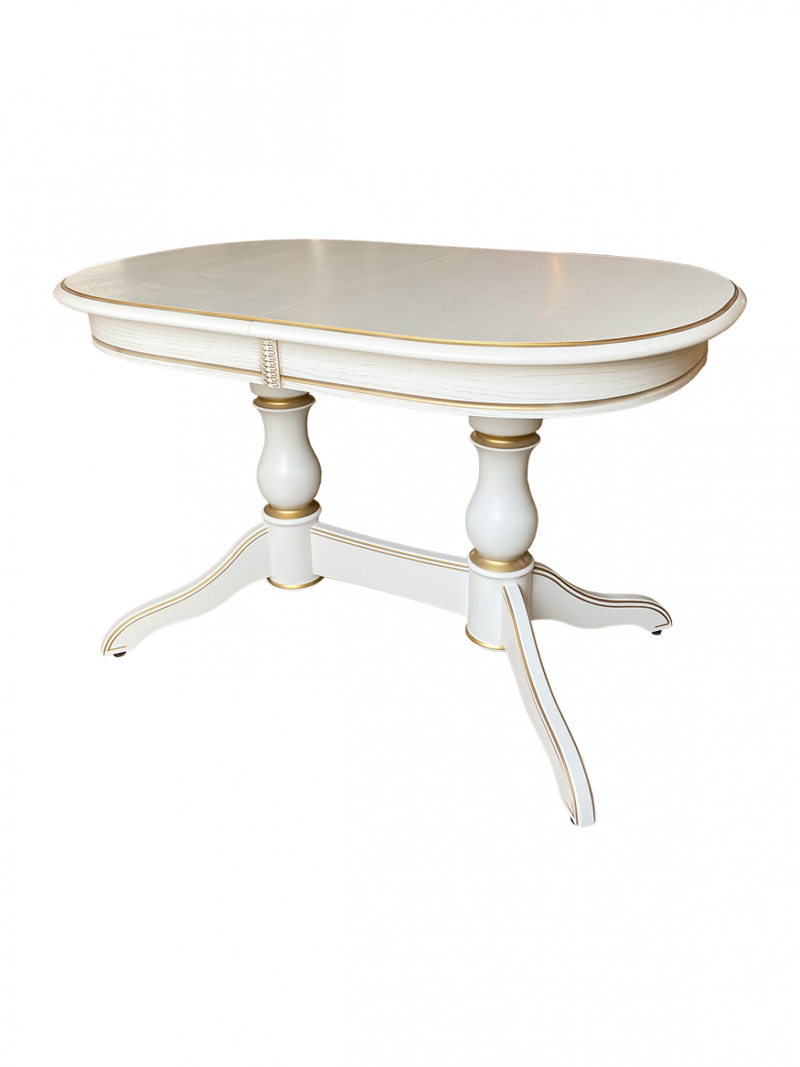 Стол Лира 1200(1550)*800*760 с патиной (тон эмаль 1 с золотой патиной) отлично подойдет для интерьеров в стиле Классика.