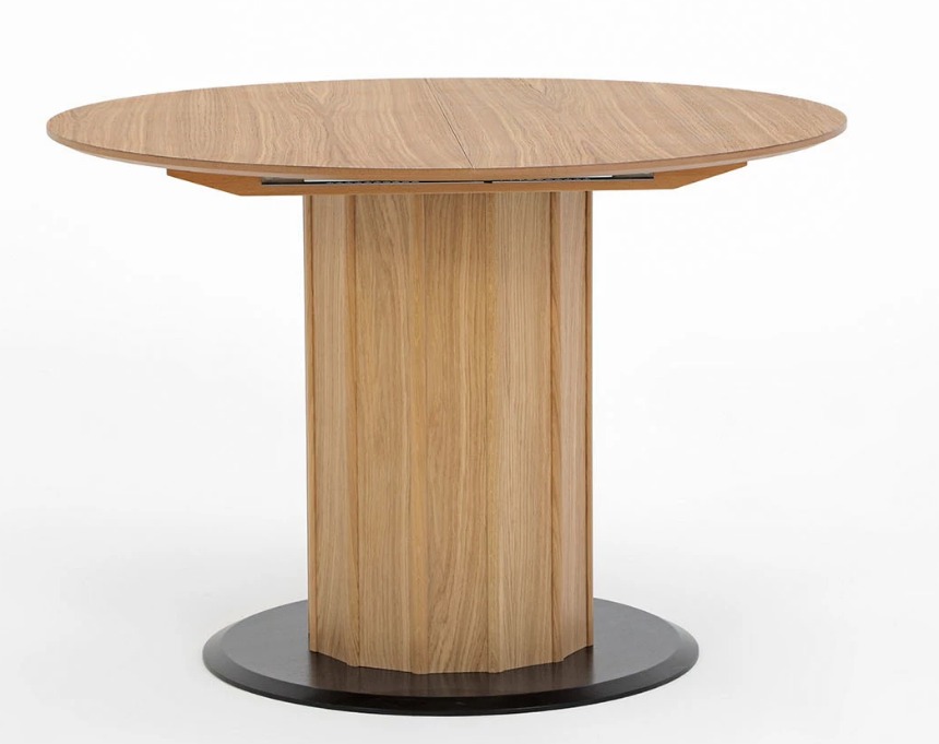 Сочетание дубовых реек с цельными ламелями, покрытыми дубовым шпоном, придаёт столу лёгкость и целостность без потри прочности.<br>