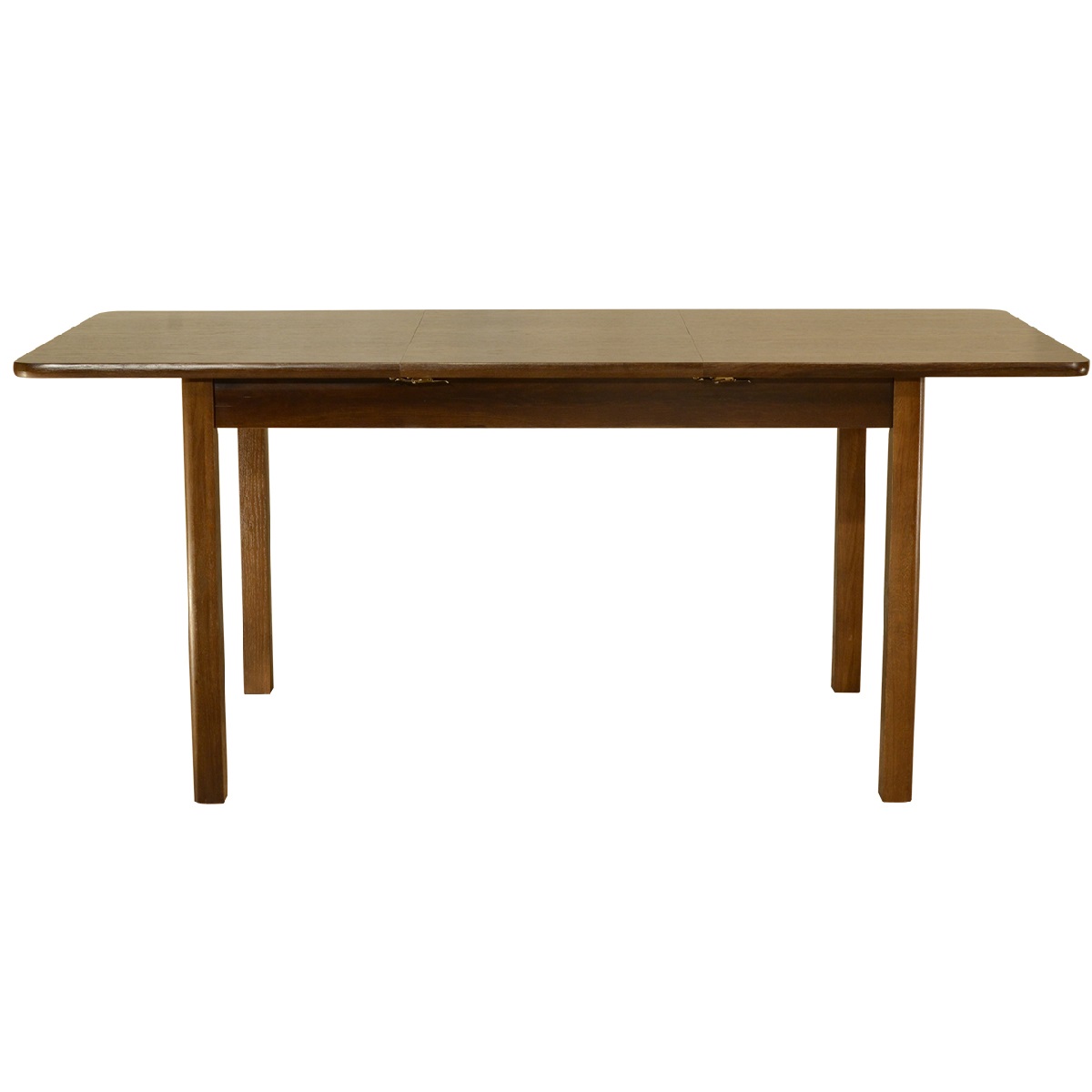 Модель выполнена в стандартной классической манере и привлекает внимание своей изысканной простотой. Материал изготовления - массив дуба, стол прослужит вашей семье не один десяток лет. Прямоугольная столешница со скошенными углами обита дубовым шпоном и опирается на четыре устойчивые прямые ножки. Благодаря механизму переворота вставок “бабочка” и несинхронному механизму трансформации стол одним движением можно увеличить на 50 см. Оттенок тонировки дерева вы можете выбрать на свой вкус из нашего обширного каталога.<br>