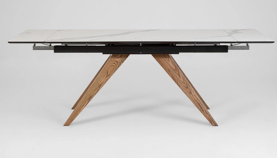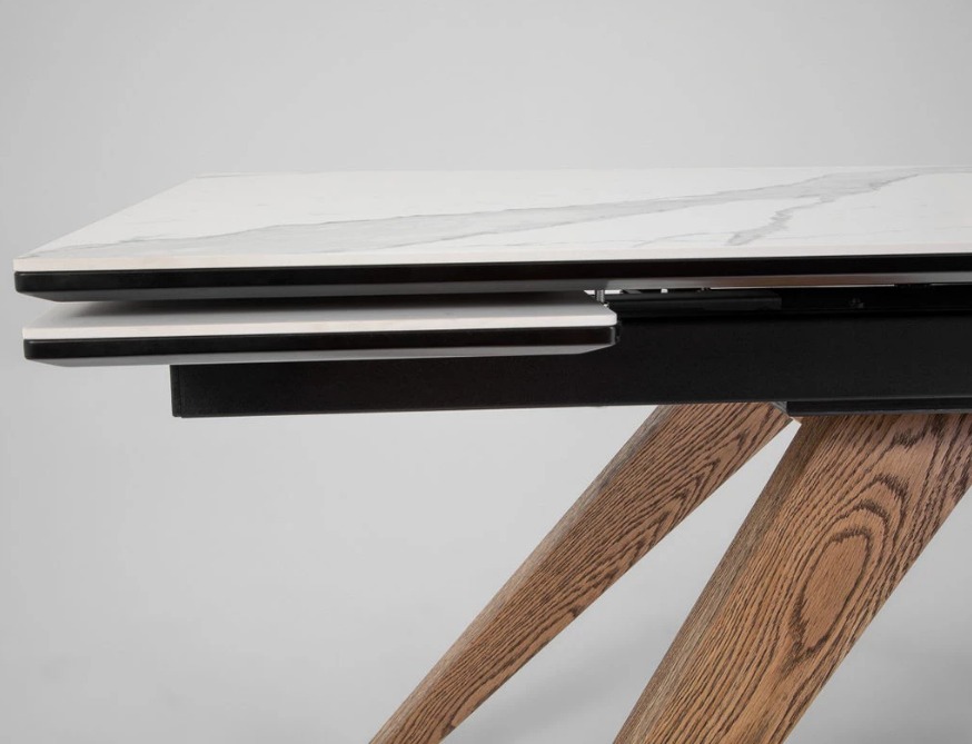 Увеличить длину стола можно с любой стороны. Столешница не имеет стыковочного шва посередине.