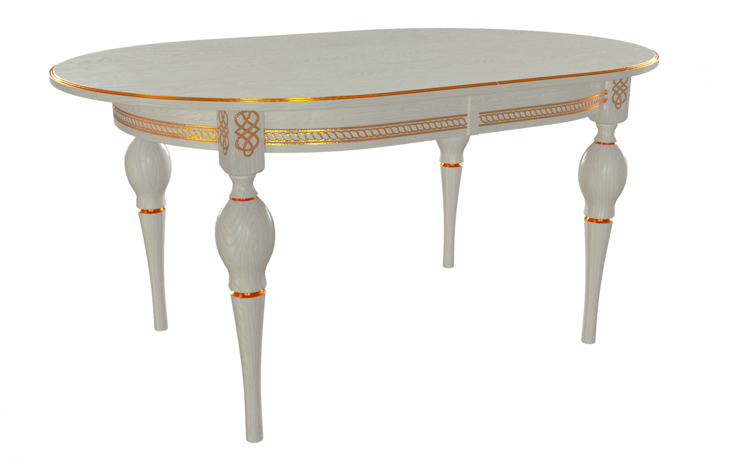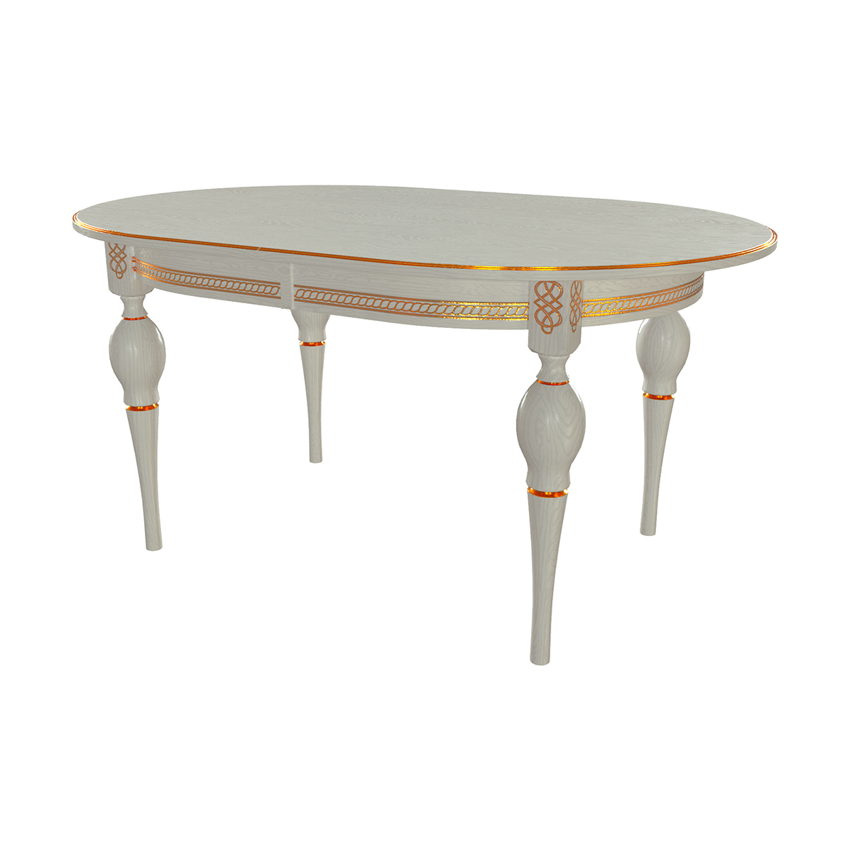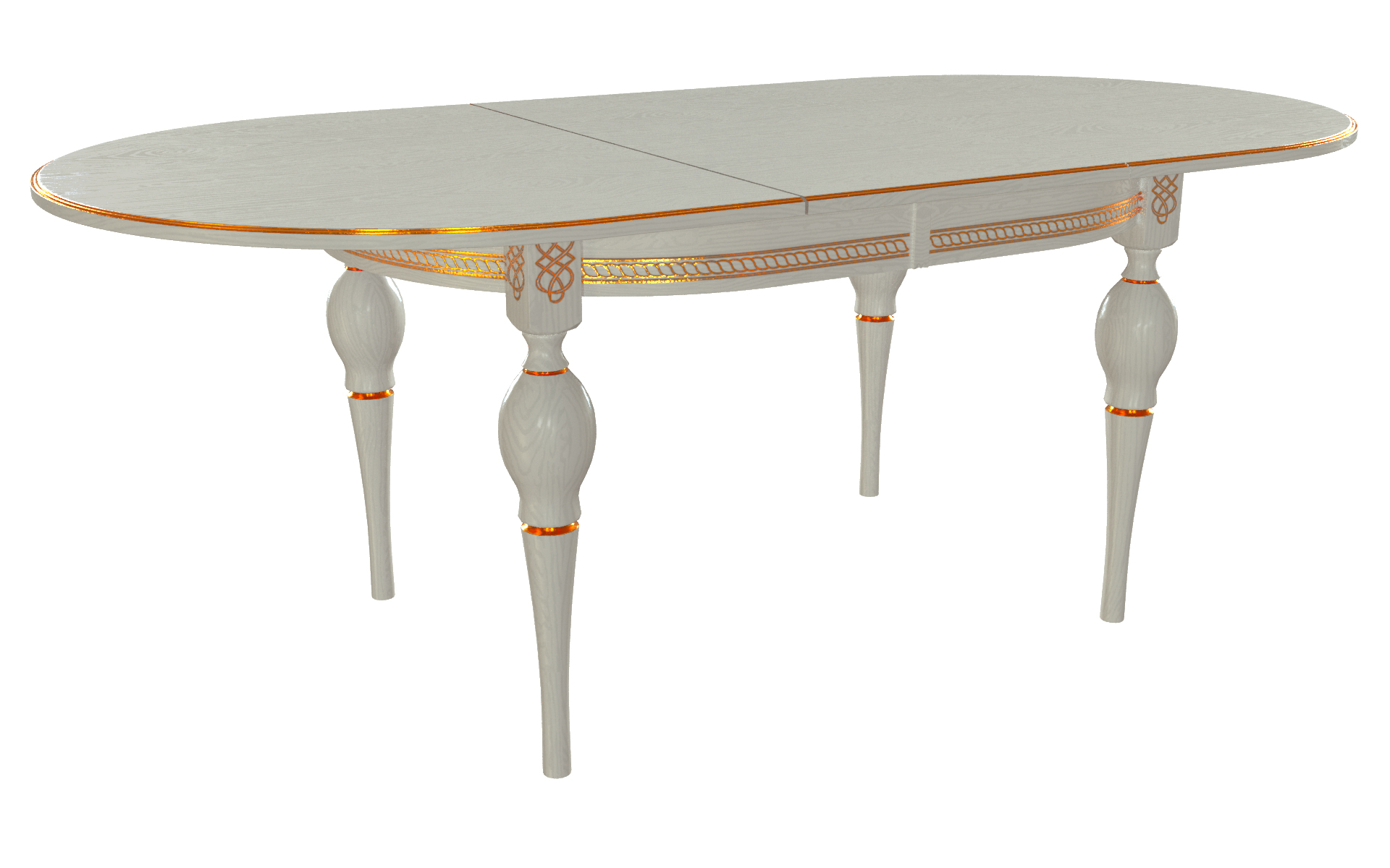 Большой раздвижной овальный стол из массива бука в классическом стиле. Столешница – МДФ, облицованная шпоном ясеня, богатый резной декор. Различные оттенки тонировки, возможно изготовление с патиной.