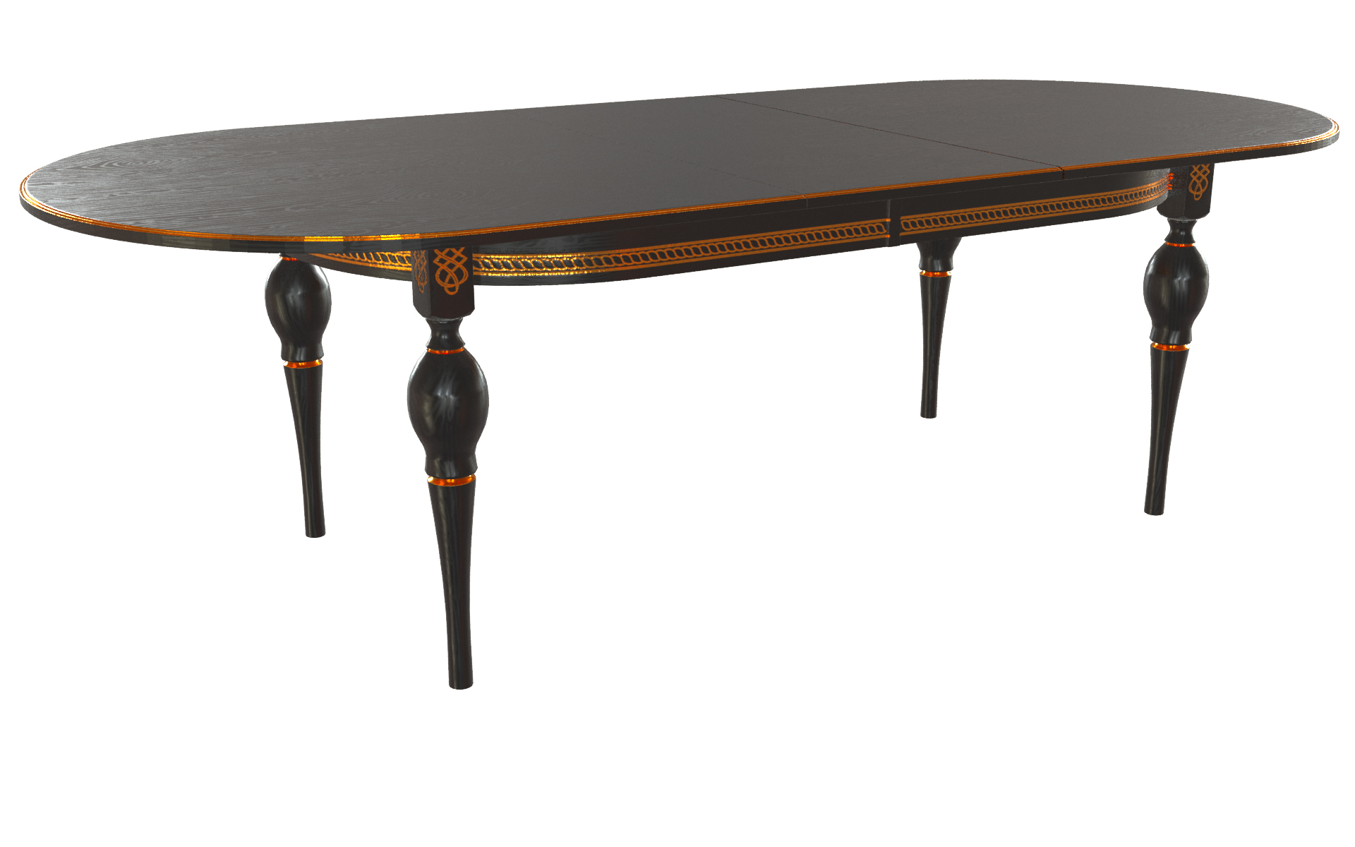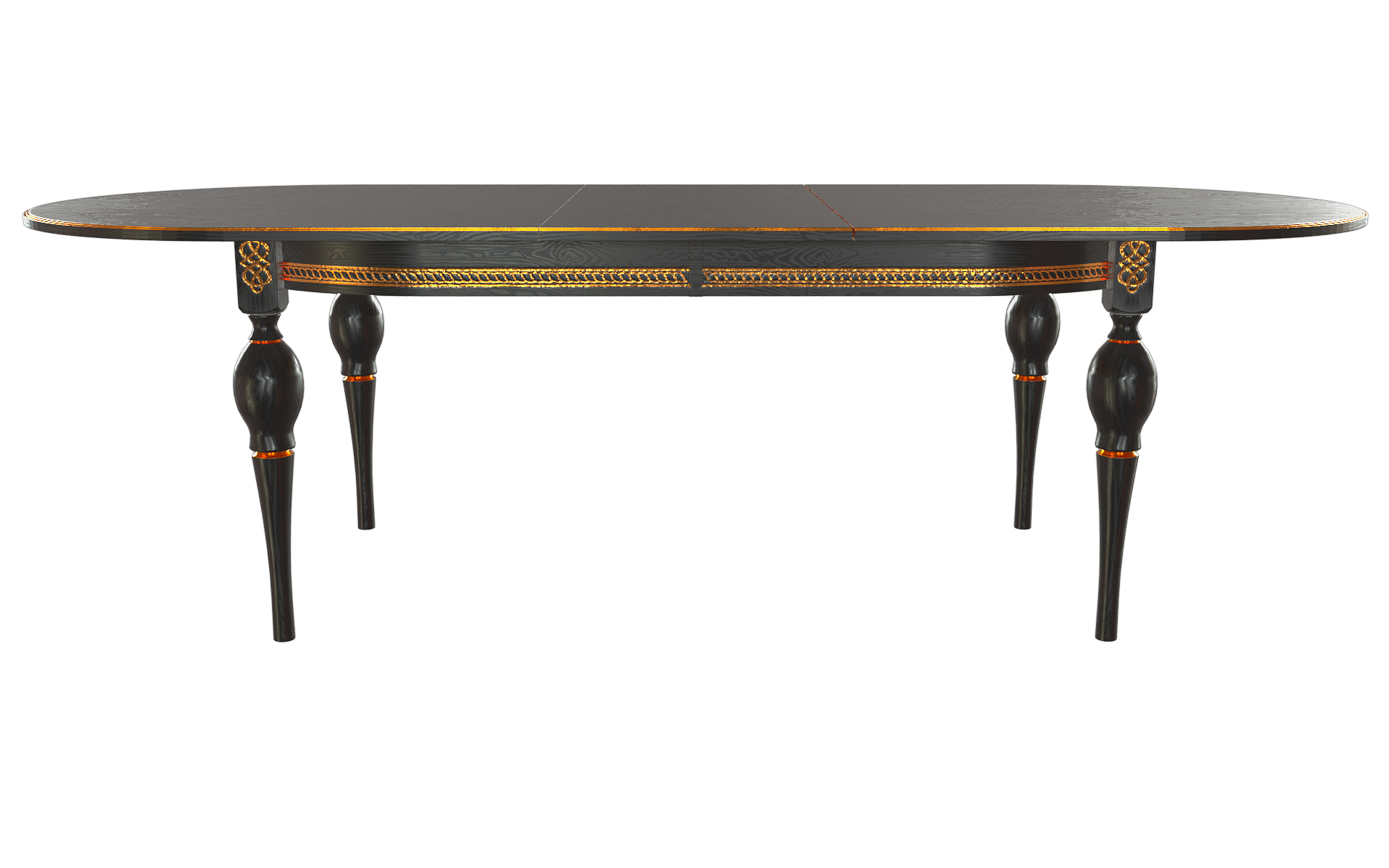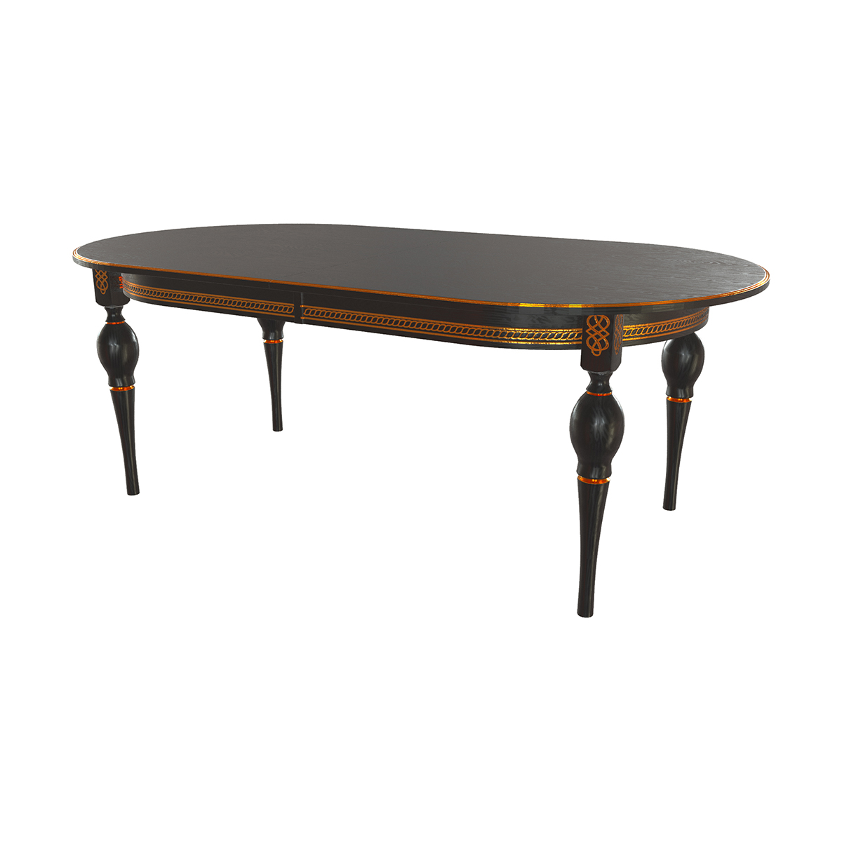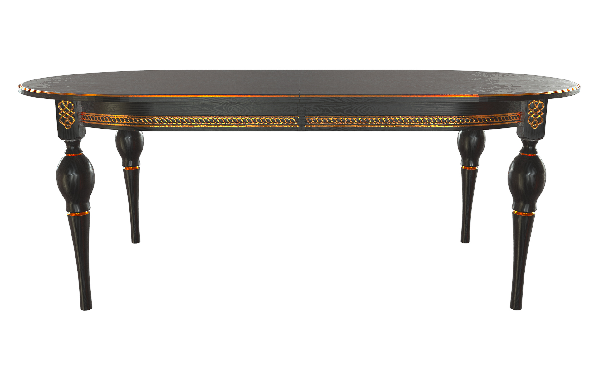Стол Рич-М 2000(2500)*1100*765 (тон черный RAL9005 + патина золото) отлично подойдет для интерьеров в стиле Классика.