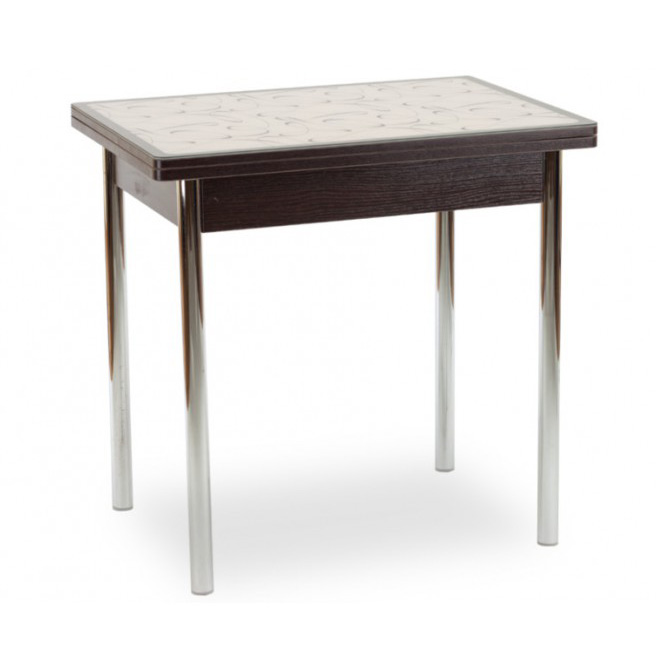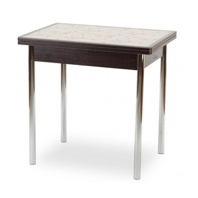 В сложенном виде длина столешницы всего 60 см - такой стол подойдет даже для очень небольшого помещения. А благодаря встроенному поворотно-откидному механизму ее можно увеличить вдвое. Материалы изготовления - МДФ, ЛДСП и окрашенное закаленное стекло. Несколько вариантов исполнения - цветное стекло, стекло с кожзамом, фотопечать. Ножки - устойчивые прямые или оригинальные гнутые могут быть изготовлены из хромированной стали или массива березы белого, кремового или цвета венге.