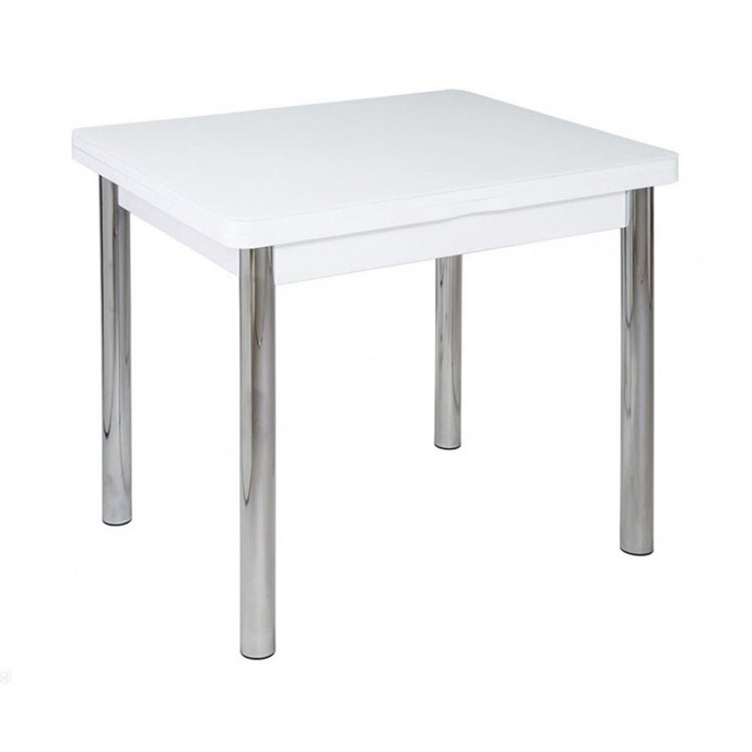 Стол Руан СТ 600(1200)*800*750 Ноги прямые 02 гальваника (стекло Белое цвет БЛ)
