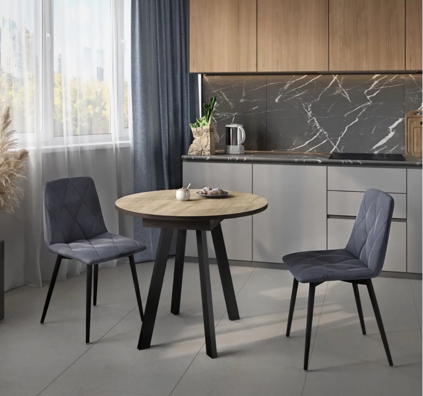Многие мечтают о круглом столе для своей кухни. Но чтобы с удобством разместить за ним хотя бы шесть человек, потребуется стол диаметром полтора метра! При этом середина стола перестаёт быть рабочим пространством. Совместить преимущества прямоугольного и круглого стола может наш раздвижной стол ВИТА КР. В собранном виде он представляет собой идеальный круг с диаметром 90 см.