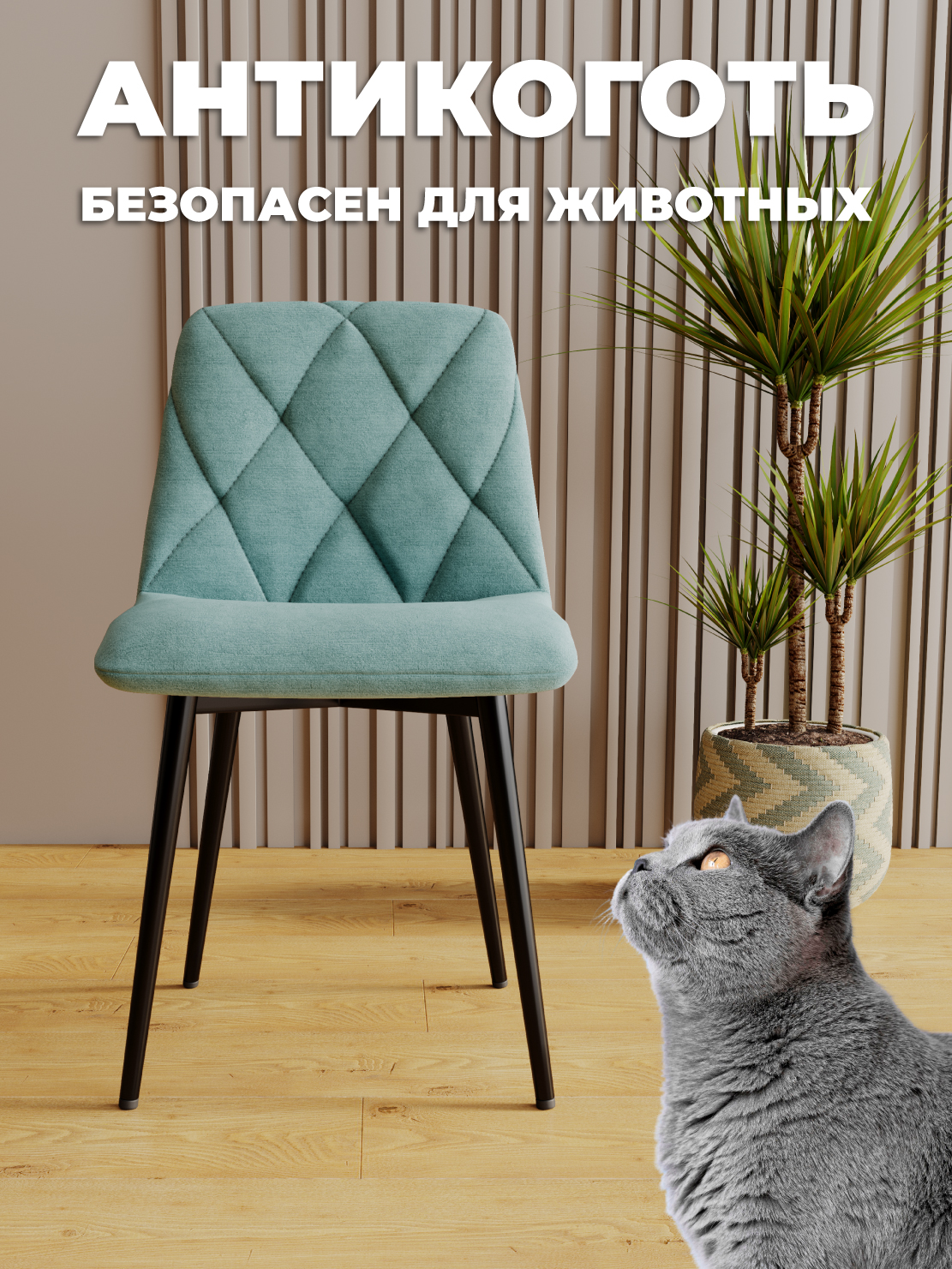 Ткань с повышенной износостойкостью также имеет эффект антикоготь. Безопасен для детей и домашних животных. Стул прекрасно подойдёт для использования в офисных помещениях, коммерческой недвижимости, кафе, ресторанах и школах. Стул будет очень удобен для школьников, так как имеет компактные размеры по высоте и глубине сиденья.