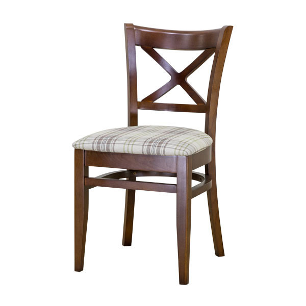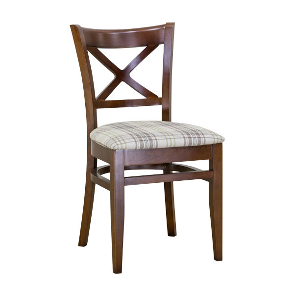 Модель выполнена из прочного и надежного массива бука. Жесткое сиденье полуовальной формы имеет оптимальные размеры и глубину посадки. Спинка чуть отклонена назад, состоит из двух перекрещивающихся по центру перекладин. Сидеть на таком стуле будет максимально комфортно каждому. Передние ножки изделия прямые, чуть сужаются ближе к полу и соединены с задними с помощью проножек. При изготовлении на заказ вы можете выбрать оттенок тонировки дерева из каталога фабрики.