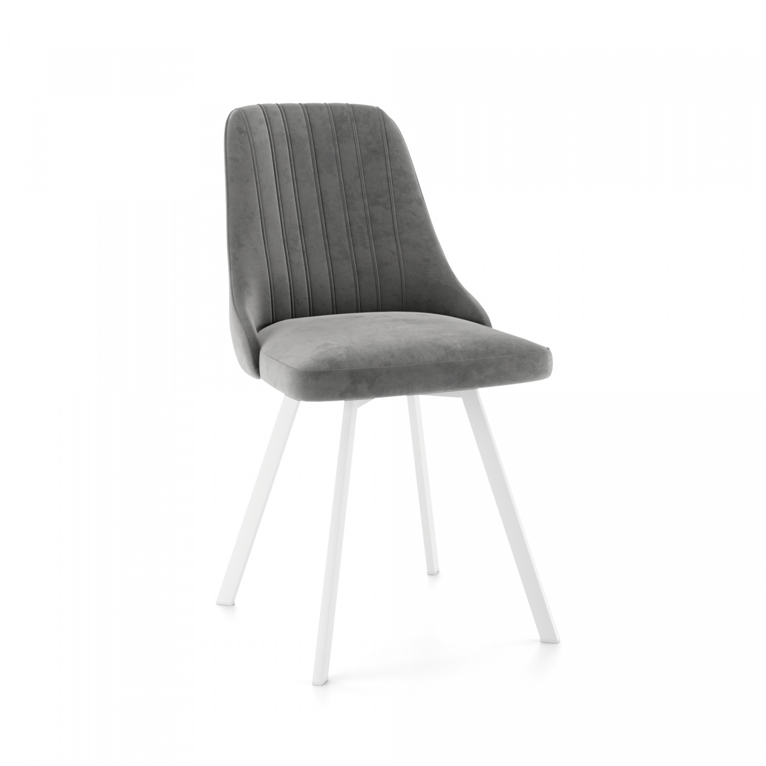 Стул обеденный Лора велюровый, металлокаркас (Каркас белый №81 тк. коллекции Nella серый 060) отлично подойдет для интерьеров в стиле Модерн.