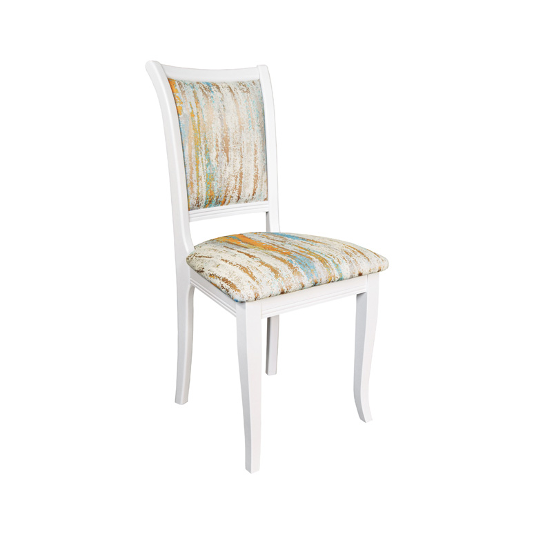 Классический стул из массива бука с мягким сиденьем и спинкой. Большой ассортимент тонировок дерева – от белого до венге, разнообразные варианты обивки, возможно изготовление с патиной.
